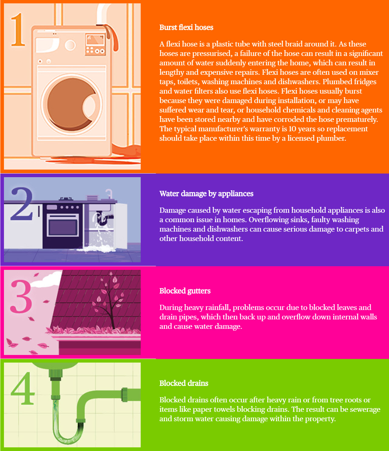 An analysis of claims made by Chubb Masterpiece clients from 2013-2018 indicates that the four leading causes of water damage in Australian homes are: