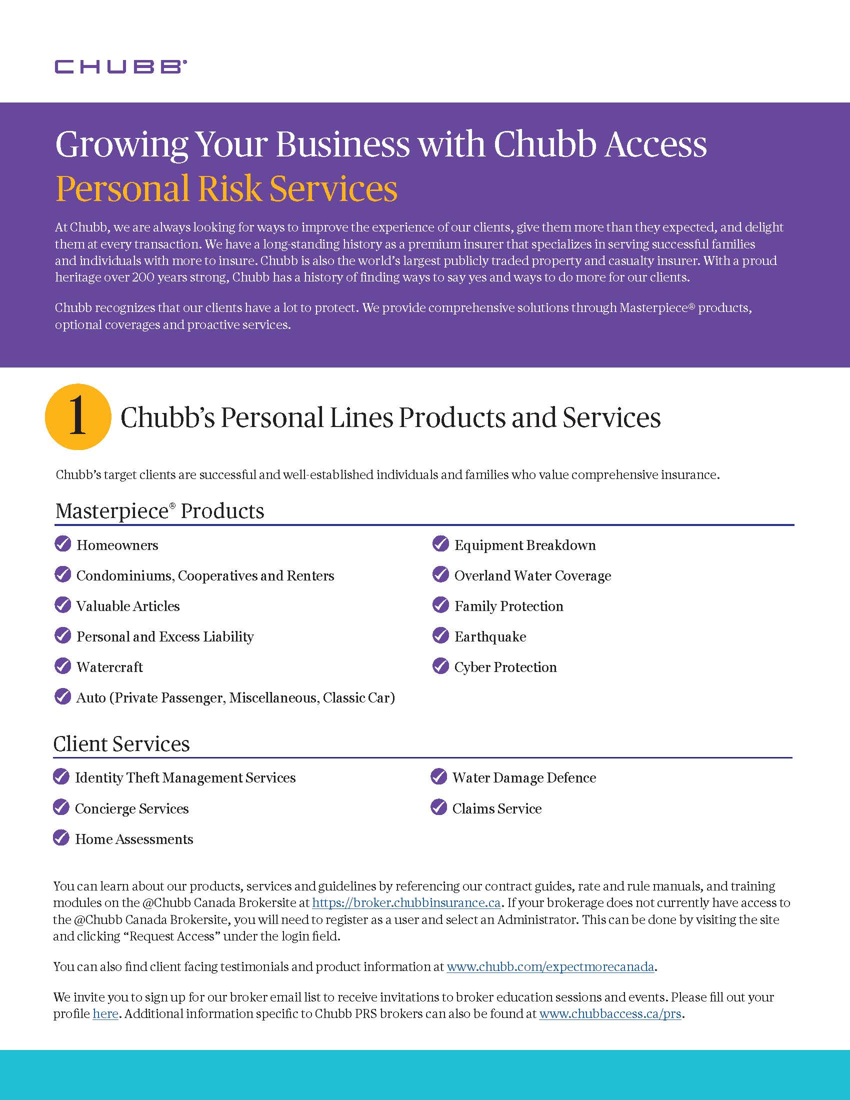 Accès Chubb est un programme qui a été lancé en 2005 afin de permettre à tous les courtiers du pays d'accéder aux produits d'assurance des entreprises et des particuliers de Chubb, peu importe leur volume d’affaires et sans entente formelle.