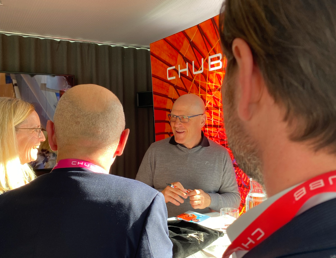 Nach diesen spannenden Anekdoten gehörte die Bühne dem diesjährigen Key-Note Redner Didier Cuche, ehemaliger Skirennfahrer in den Speed-Disziplinen Abfahrt und Super-G sowie im Riesenslalom. Die Schweizer Skilegende erläuterte die Meilensteine seiner Karriere, seine grössten Siege und schwierigsten Herausforderungen während 17 Jahren Weltcup – fast so lange, wie Chubb in der Schweiz tätig ist. Zu seinen grössten Erfolgen gehörten sicherlich der Gewinn der Silbermedaille an den Olympischen Spielen 1998 in Nagano und die Super-G Goldmedaille sowie die Abfahrts-Silbermedaille bei den Weltmeisterschaften in Val d’Isère 2009. Nicht zu vergessen sind ebenfalls fünf unvergleichliche Kitzbühl-Siege und der sechsmalige Gewinn der Saison-Kristallkugel in der Abfahrt (4), Super-G (1) und Riesenslalom (1). Doch es gab auch einige Durststrecken und schwierige Momente zu verdauen, wie Verletzungen und Unbeständigkeit vor allem in den ersten Jahren seiner Skikarriere. Im Jahr 2012 beendete er nach einem zweiten Karrierefrühling seine Aktivzeit im Alter von knapp 38 Jahren und arbeitet seither als Berater für Swiss-Ski und als Markenbotschafter.