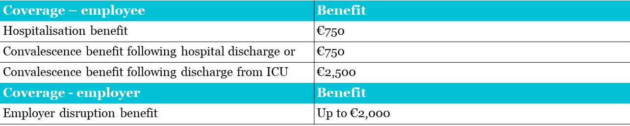 For employees and businesses affected by COVID-19, additional financial support during recovery can help the healing process. By taking steps to reduce financial anxiety for their employees, business leaders can reinforce their duty of care commitments and support recovery. Our COVID-19 insurance programme responds as soon as an employee is hospitalised with the illness.