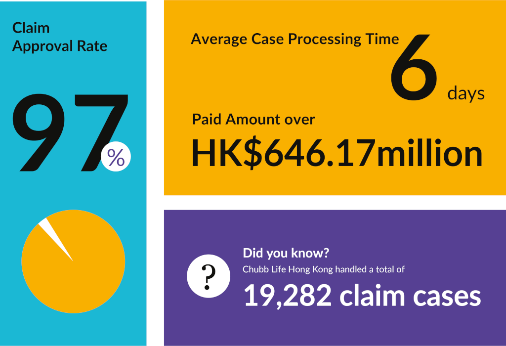 We’re proud to share that Chubb Life Hong Kong had a 97% claims approval rate in 2023, with an average claims approval time of just six days.