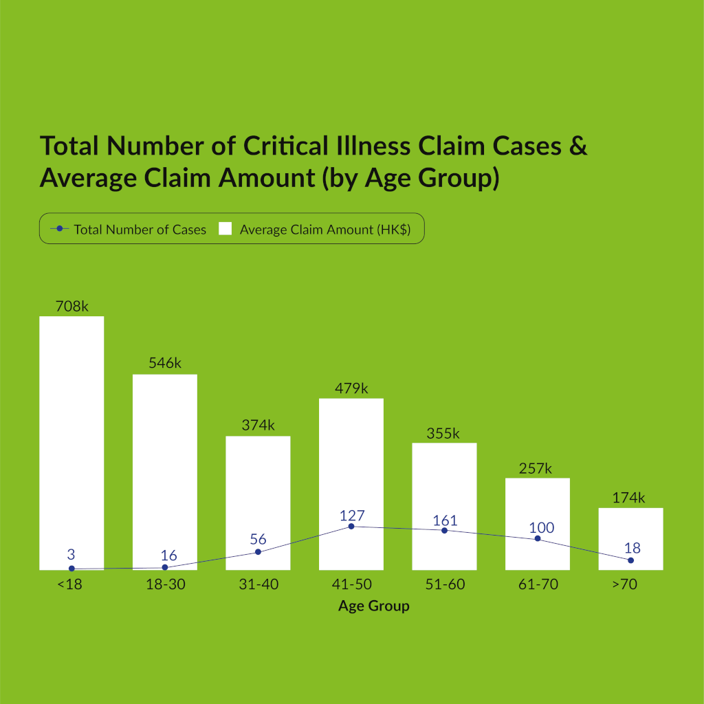 Many of us think of critical illness as a problem affecting seniors – but the data illustrates something different. In fact, over 75% of critical illness claimants at Chubb Life Hong Kong in 2023 were 60 years old or younger.
