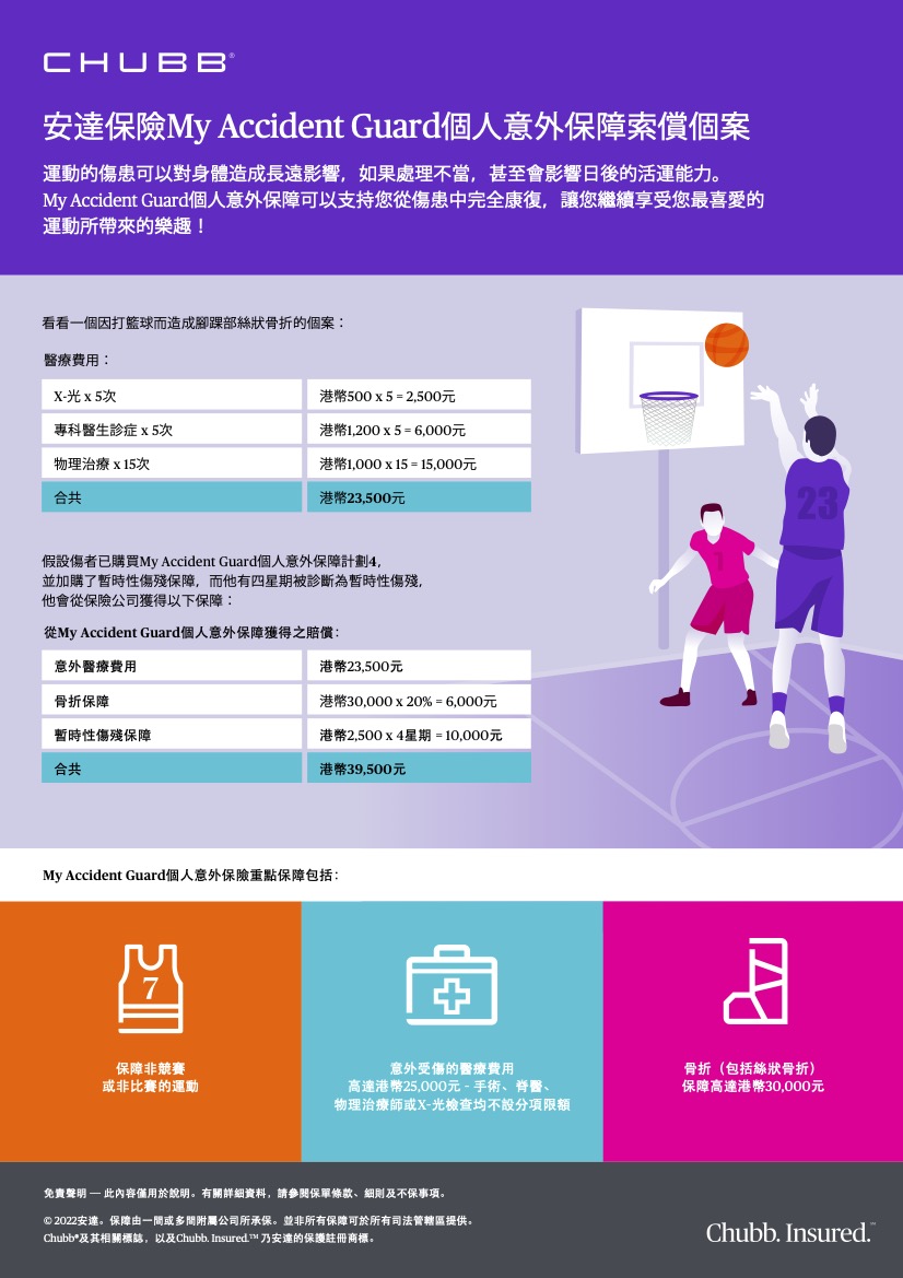 My Accident Guard 個人意外保障旨在發生意外時為您和家人提供財務支援,讓您可以安心專注康復。