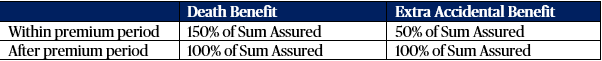 Extra Accidental Death Benefit will be paid if the insured had an accident in the age not more than 60 years and within 90 days since the accident occurred and caused the death, maximum IDR 2,000,000,000