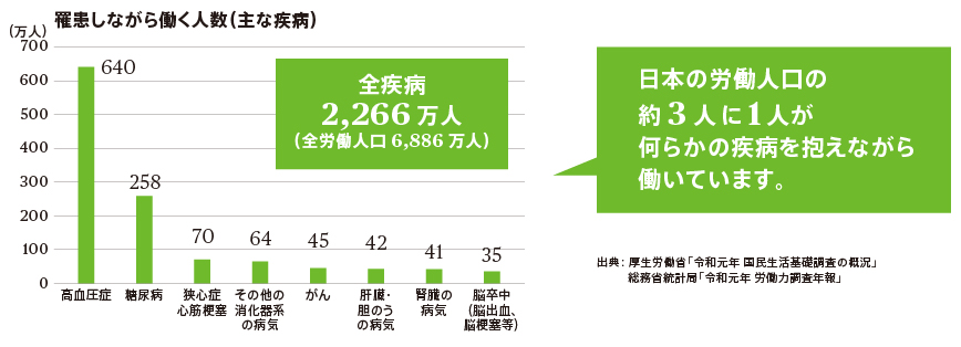 かつては”不治の病”とされていた疾病においても生存率が向上し、「長く付き合う病気」に変化しつつあります。