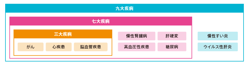 三・七・九大疾病一時金支払特約は、「三大疾病一時金支払特約」、「七大疾病一時金支払特約」、「九大疾病一時金支払特約」の総称です。