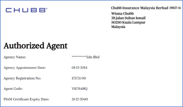 Chubb Insurance Malaysia Berhad (“Chubb”) would like to advise our customers to be on the alert for scammers and fraudsters. Scammers can trick customers into revealing their personal details through many ways which include impersonation scam, phishing scam, phone/SMS scam, and love scam. Please be aware of these scammers, Chubb will never direct you to a website asking for your personal data or banking details. If you are approached by/introduced to a person who claims to be a Chubb’s representative or agent, please request for the e-ID which looks like the below for verification. Alternatively, you may check with us if such a person is an authorised representative or agent of Chubb.