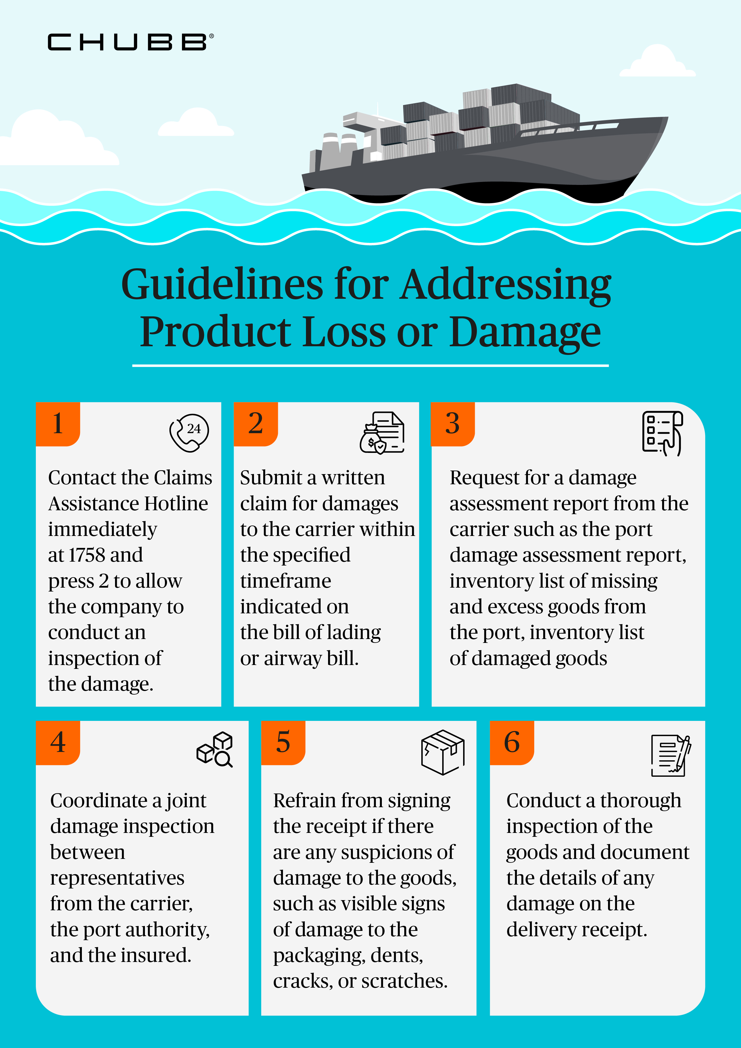 Coordinate a joint damage inspection involving representatives from the carrier, the port authority, and the insurance provider.