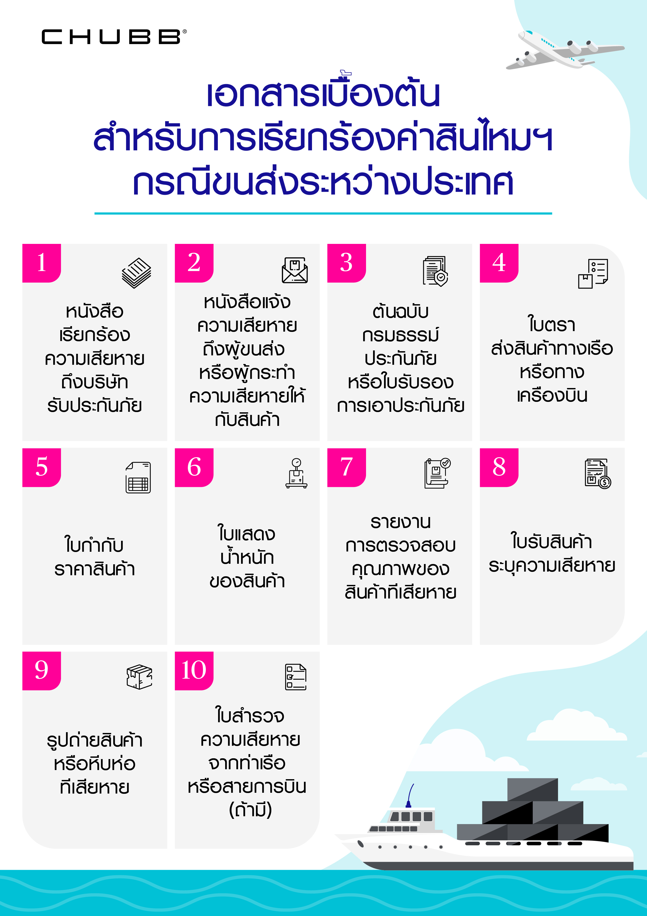- ใบสำรวจความเสียหายจากท่าเรือ หรือสายการบิน (ถ้ามี)