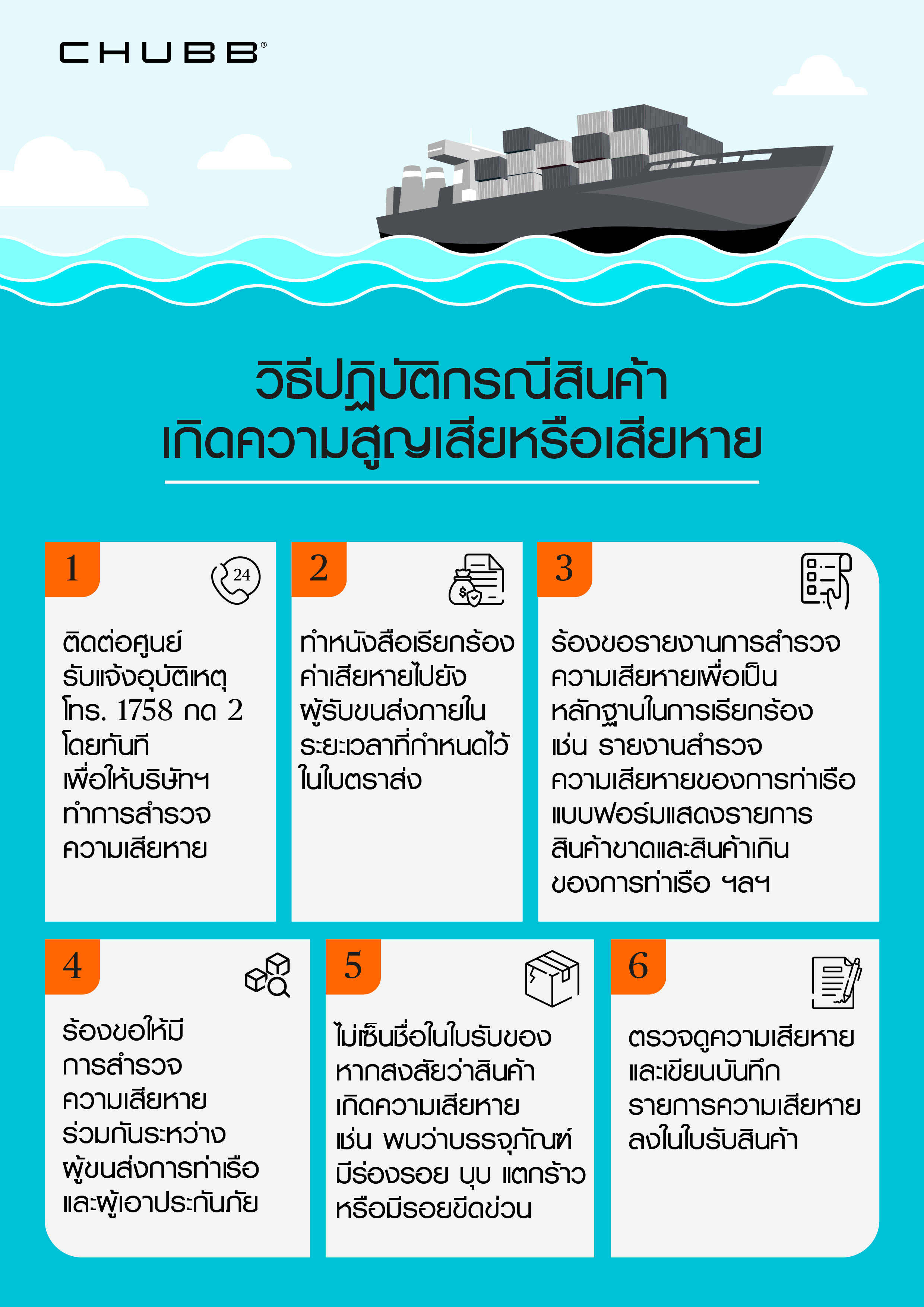 วิธีปฏิบัติกรณีสินค้าเกิดความสูญเสียหรือเสียหาย Chubb