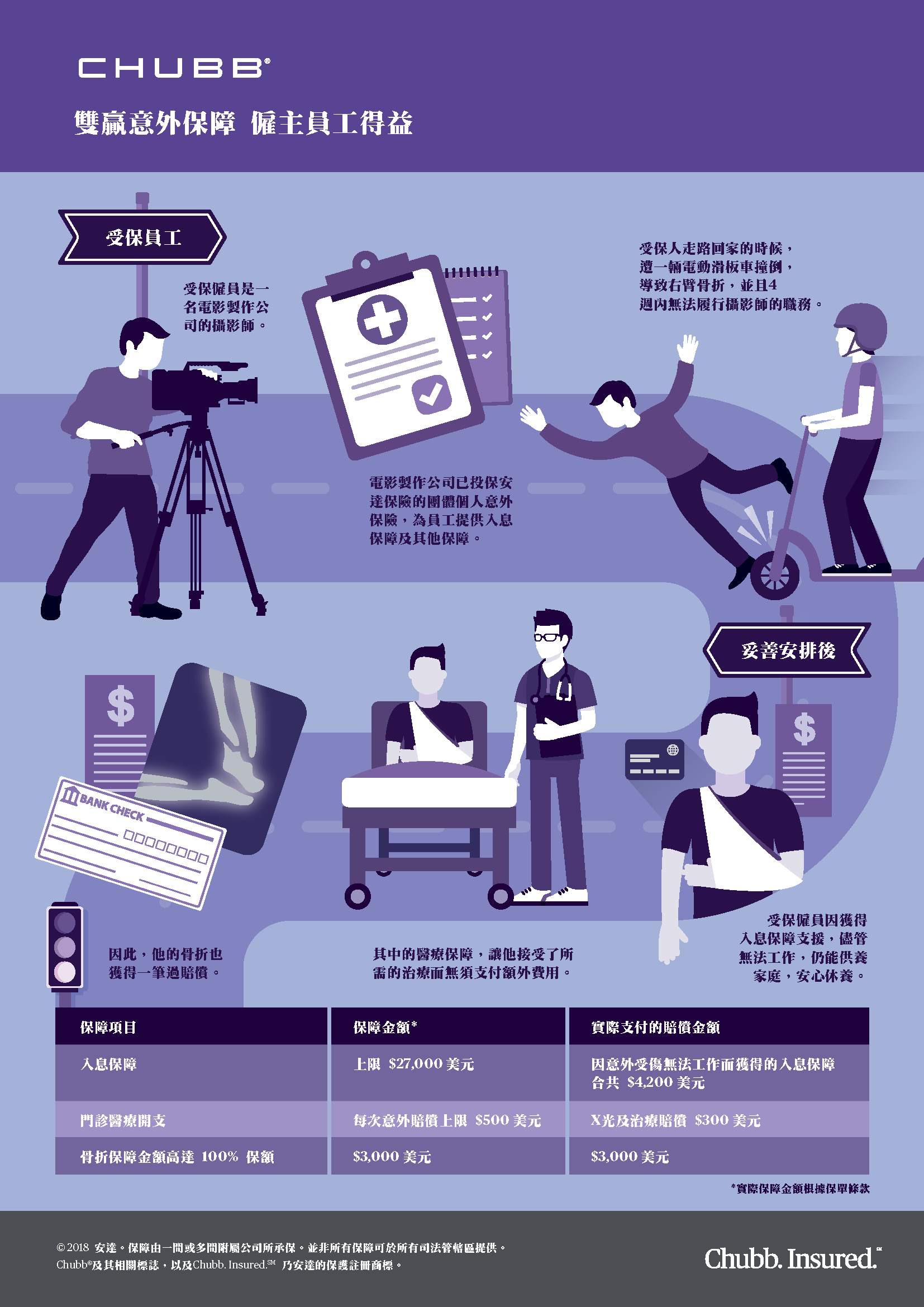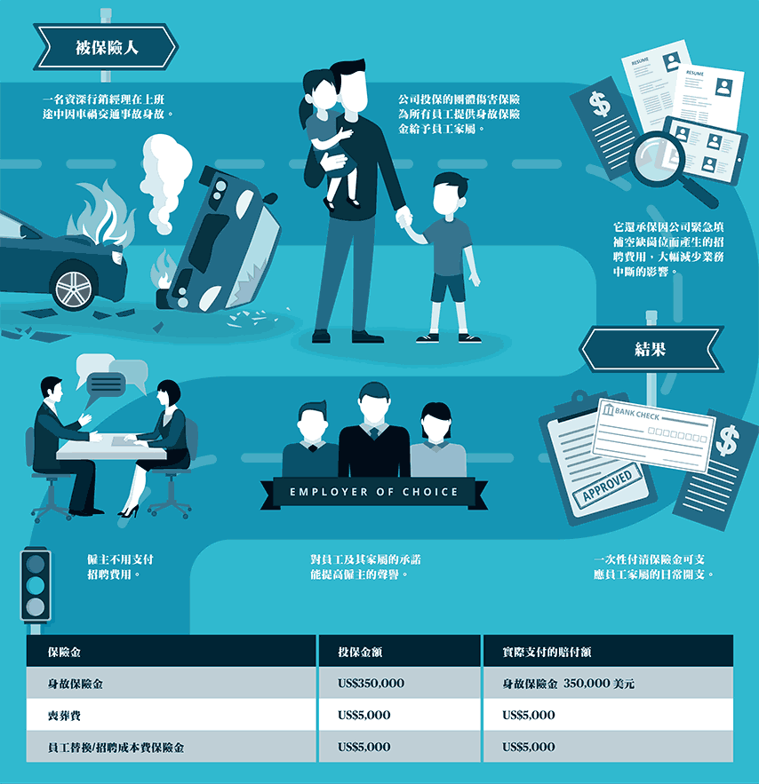 讓我們看看簡單的團體人身意外傷害保險計劃在以下情況下如何為僱員和僱主提供強有力的安全保障。在安達提供的團體保險責任範圍下承保。
