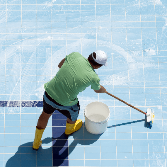 Swimming pool chemicals merged with cleaning agent at a hotel spa facility.